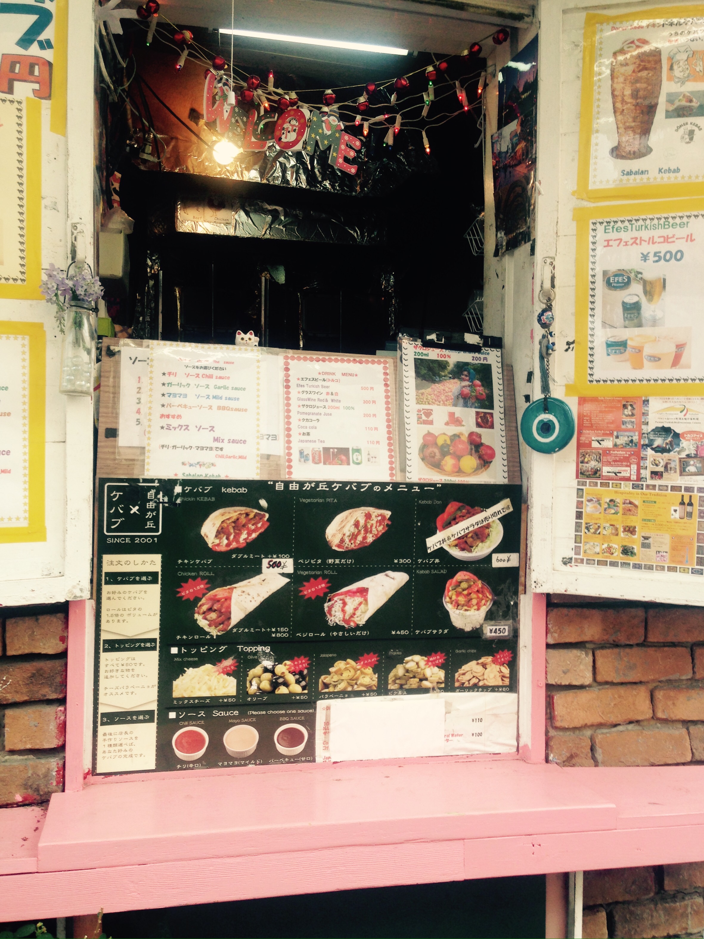 A quick Google Search later, I found Jiyugaoka Kebab. It’s an eatery right by the train tracks that’s easy to miss if you don’t know about it. The menu is simple and succinct – kebabs, rolls and kebab don (when in Japan…). There are also a couple of vegetarian options.