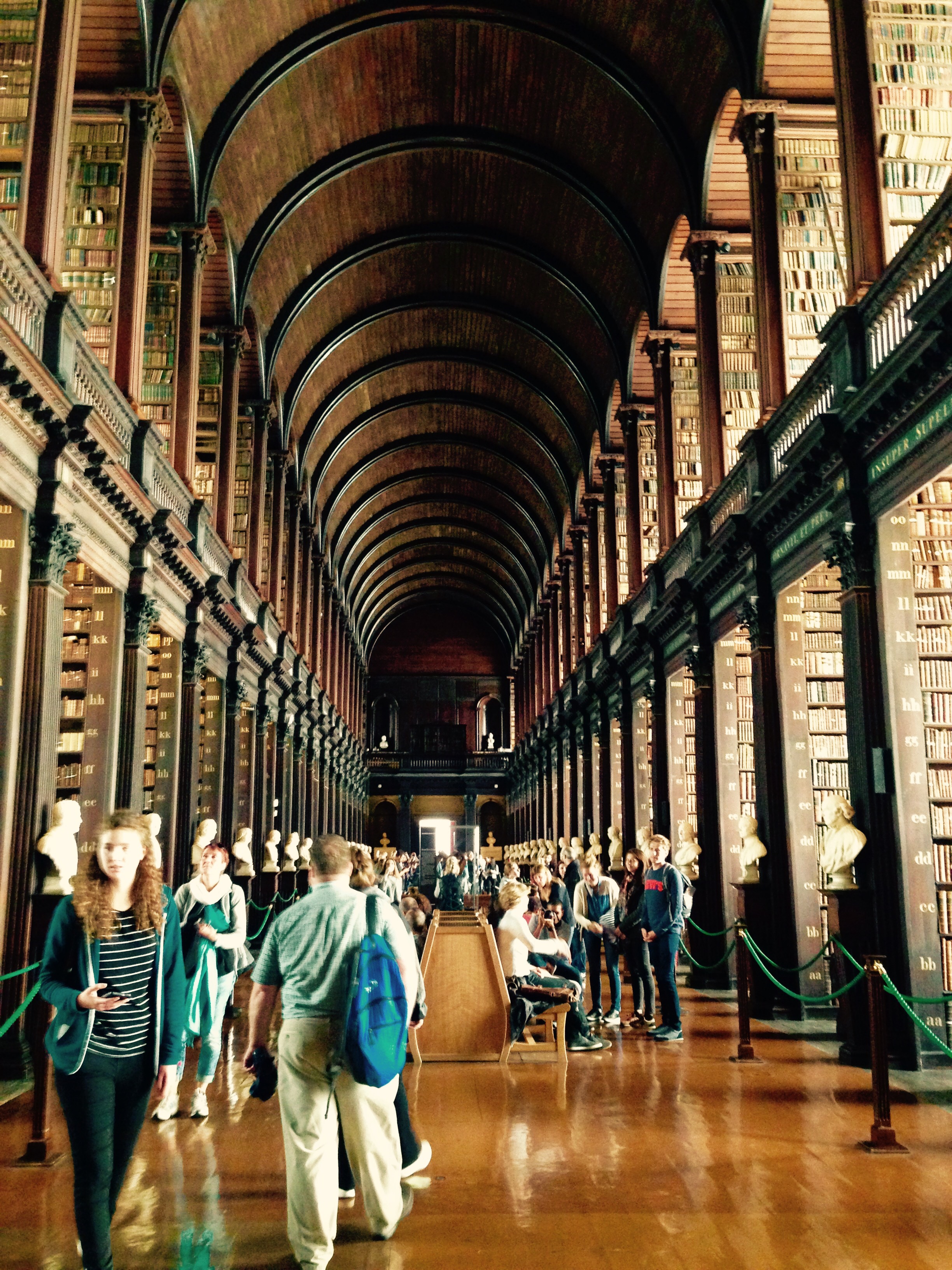 The Book of Kells exhibition is housed in Trinity College. Written around 800 CE, the Book of Kells contains a richly decorated copy of the four gospels in Latin. Although I couldn’t read anything, I was deeply moved by the detail of the manuscripts. The illustrations, ornamentation and bindings are deeply complex, ornate and extravagant.