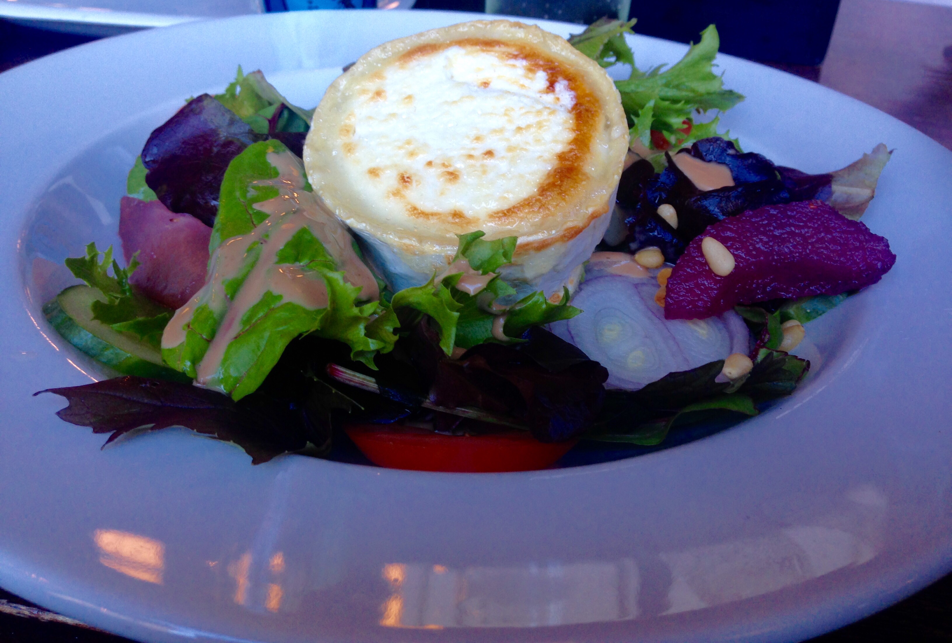 I was utterly perturbed when the goat cheese salad showed up with an entire wheel of goat’s cheese. I was expected a sprinkle, but hey – I’m not complaining.
