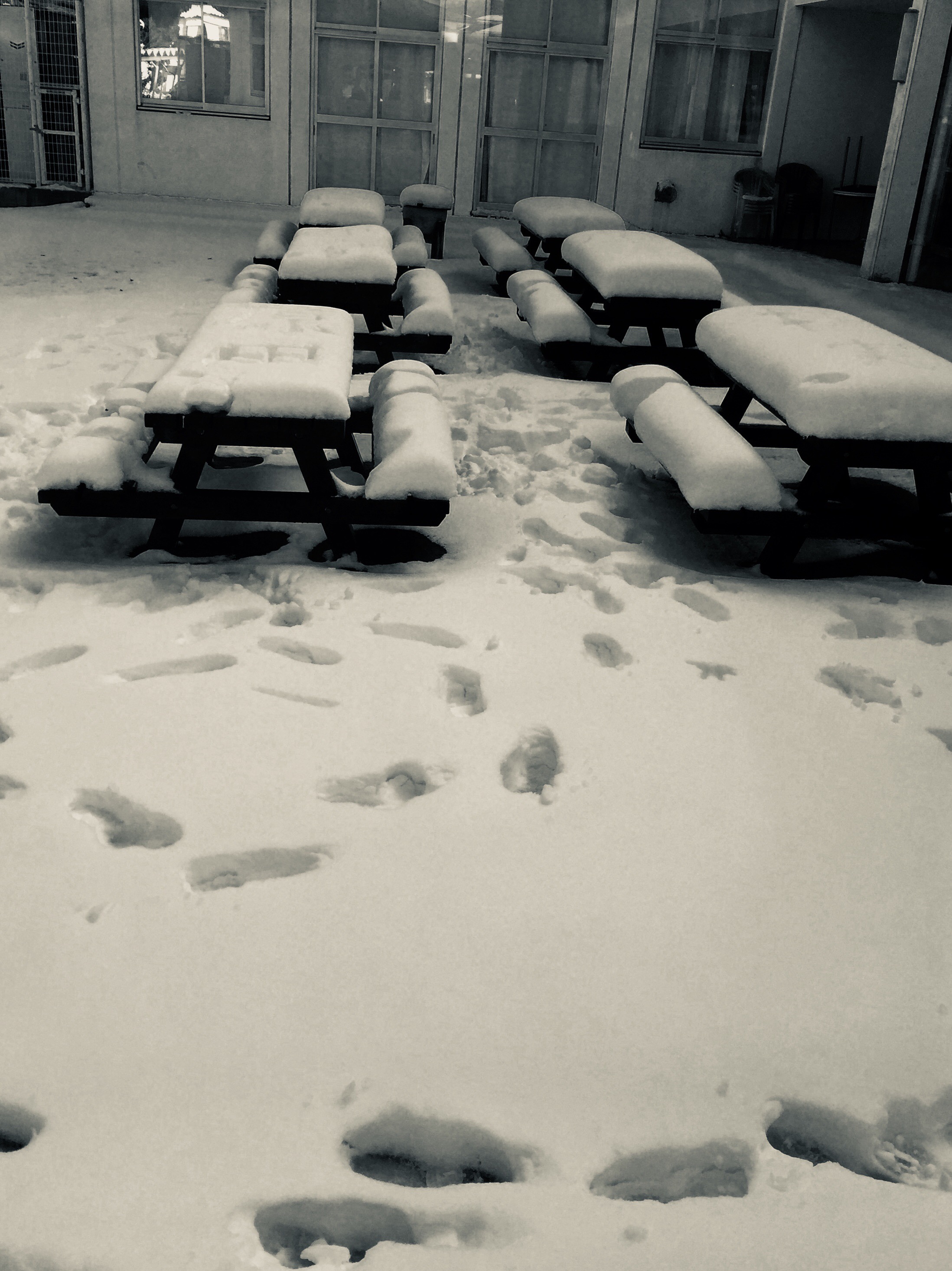Thankfully, it doesn’t snow much in Tokyo. It’s snowed a grand total of three times since I moved here some two and a half years ago. And yesterday’s snowfall was the biggest. I was in the middle of teaching a lesson when it started snowing. My students stopped listening to me and promptly rushed to the windowpanes to stare at those magical specks of white falling from the sky. The next thing I knew, some of them had opened the windows and stuck their hand out. They were collecting snowflakes and studying them. I’d done the same at their age – but how quickly the novelty had faded for me.