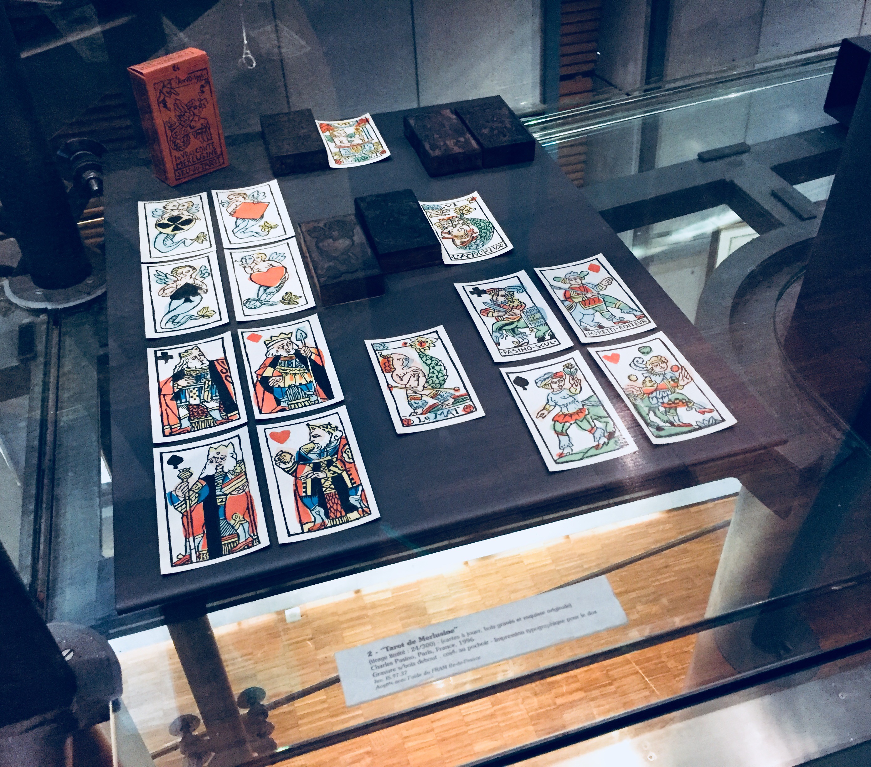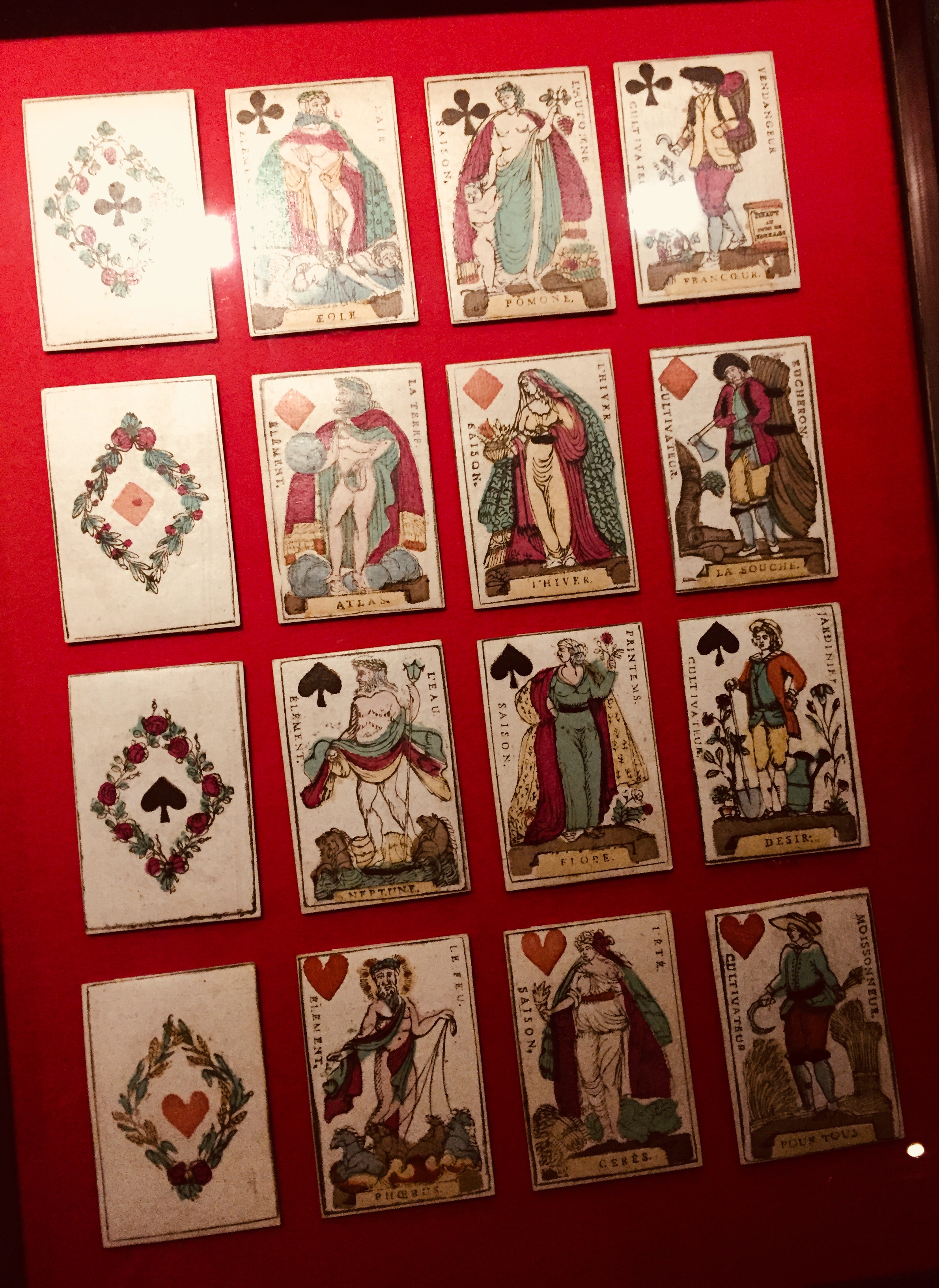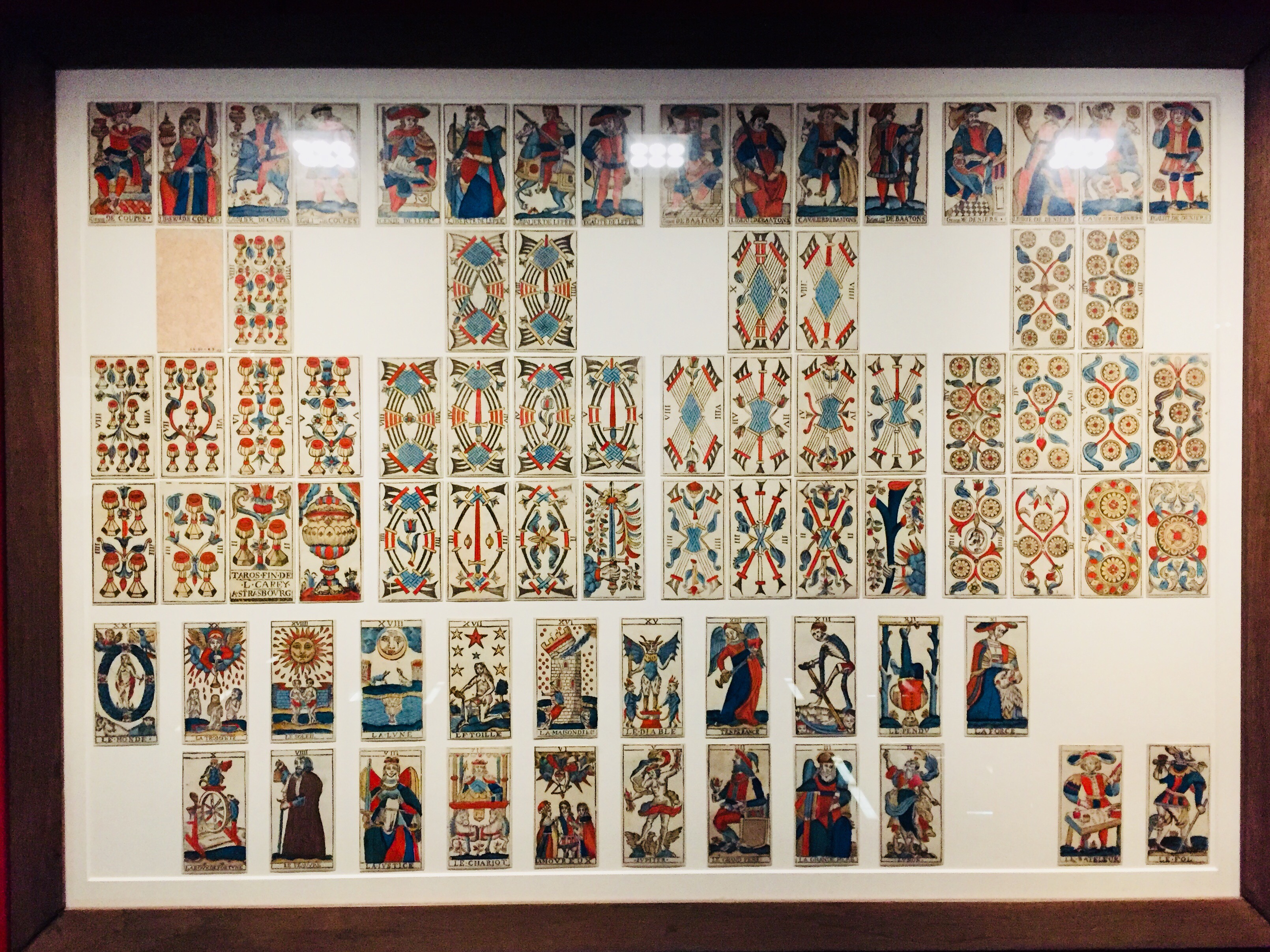 Unfortunately the curation is entirely in French, so I had no idea exactly what I was looking at. But it had some original (or super old?) exhibits of the Tarot de Marseille: one of the earlier standard tarot decks from which many of the modern decks are derived.