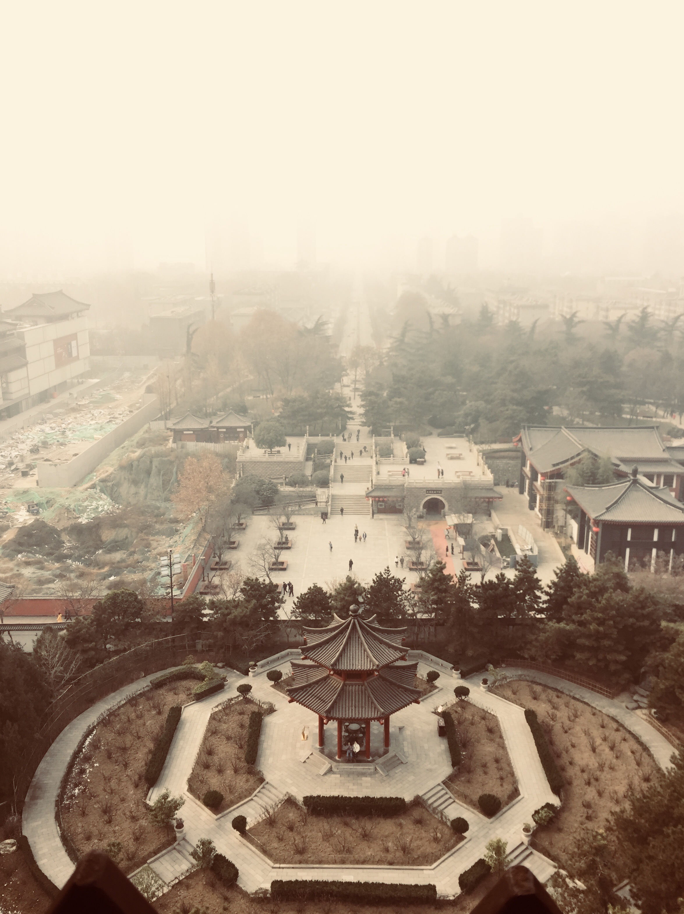 I had to climb seven flights of stairs to get to the top of the pagoda. I wish I could say that the view from the top was worth it, but it really wasn’t. All I saw was a city bathed in a sea of smog.