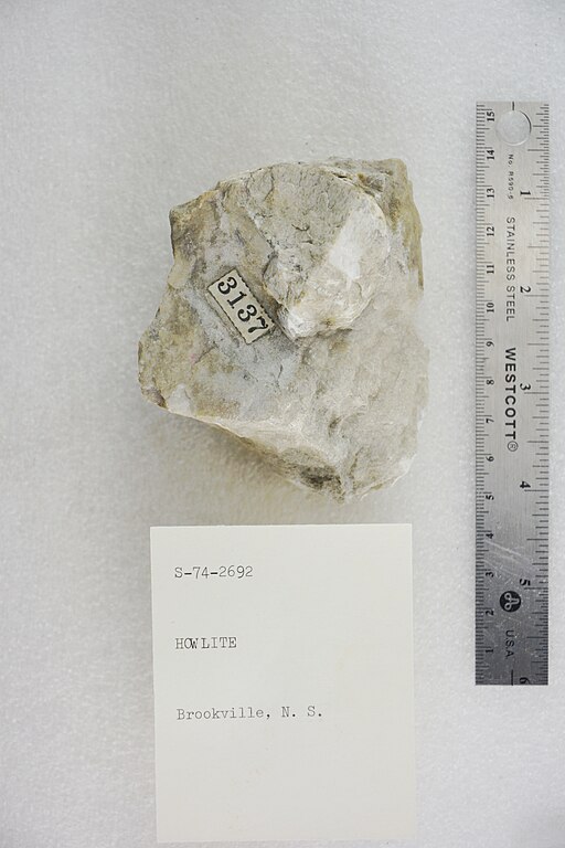 Howlite was discovered near Windsor, Nova Scotia, in 1868 by Henry How, a Canadian chemist, geologist, and mineralogist. Howlite can also be found in Germany, Serbia, Turkey and the United States.