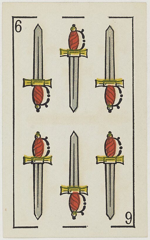 Aluette deck, B. P. Grimaud editor, France, 1860: six of swords