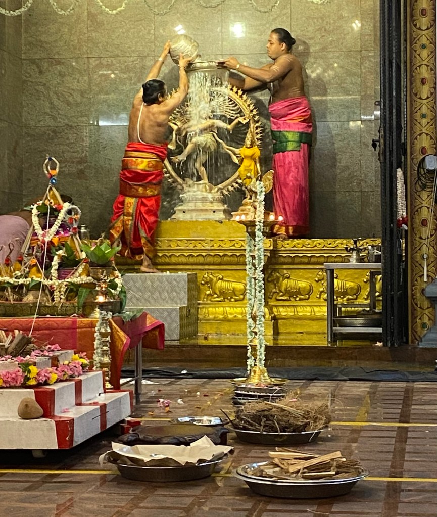 During Abhisheka, the icon is bathed with sacred substances such as: water from holy rivers, milk, honey, yogurt, ghee, coconut water, sandalwood paste, and fragrant oils. Each substance has its own spiritual significance and is believed to purify, nourish, and please the deity. The act of bathing the icon is accompanied by the chanting of mantras and hymns, which further energise the space and the icon itself.