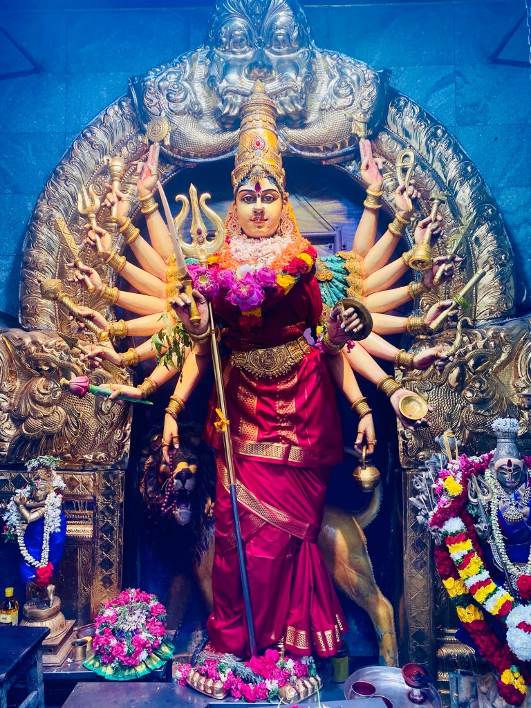 She stands at the threshold of one’s life, serving as the guardian of the transition between who we were and who we are becoming. By placing one’s trust in the eighteen-armed Mother, the devotee accepts a life where the world may remain chaotic, but the heart remains a palace of prosperity. She ensures that her seekers walk with “Aishwarya”—a divine dignity that comes from knowing that the Queen of the Universe is personally invested in their journey.